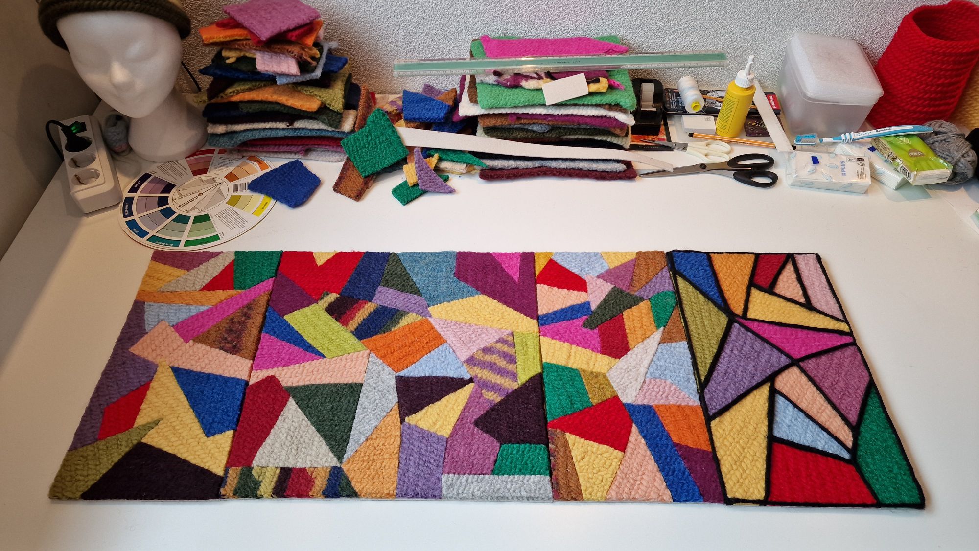 Three hobbies combined into one project with ''stained glass '' using 100% wool :)