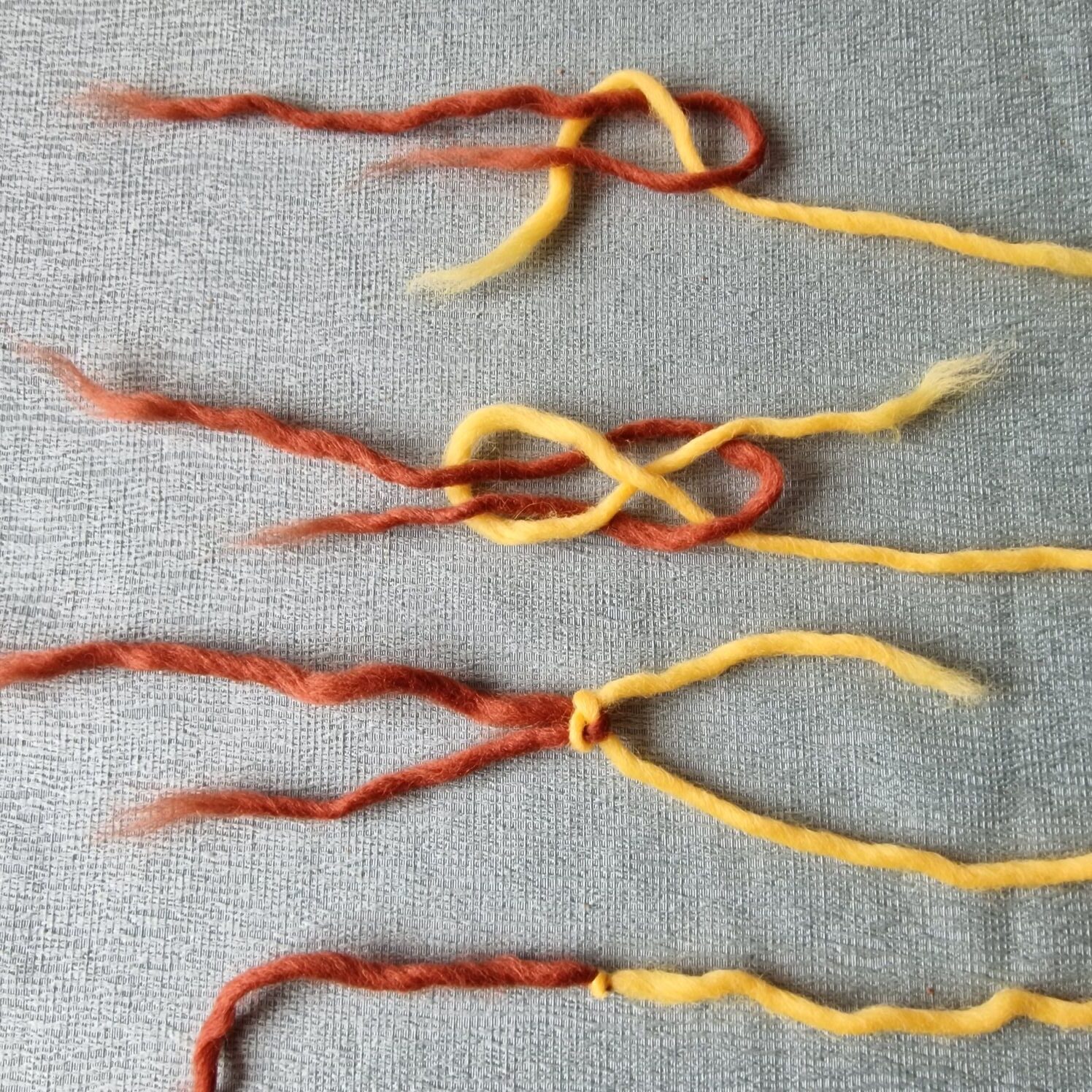 If the yarn is not wool you can knot it. With my other hobby is use the sheet bend to knit vissing nets.